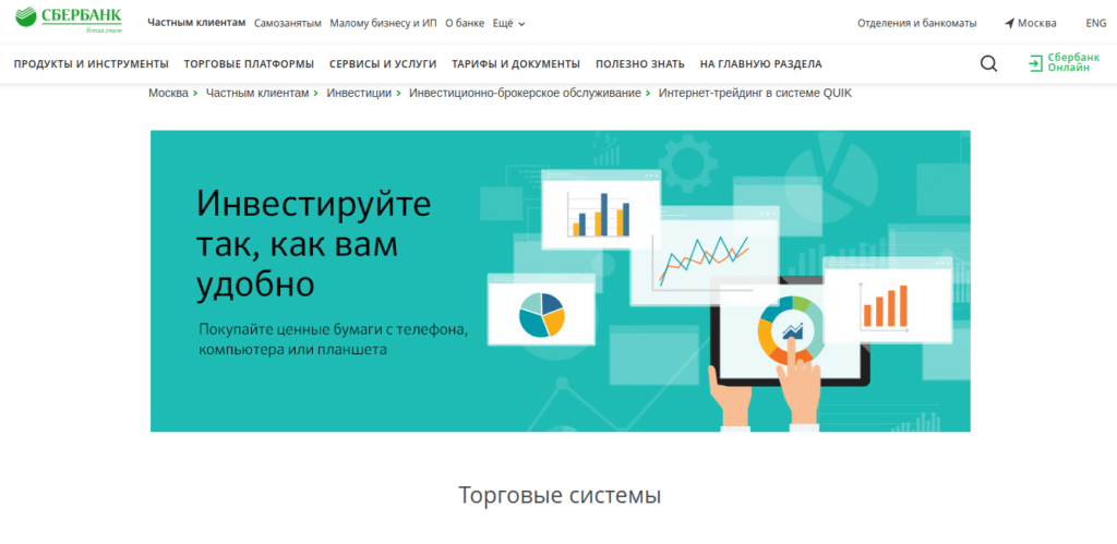 - Терминалы QUIK и СберИнвестор;