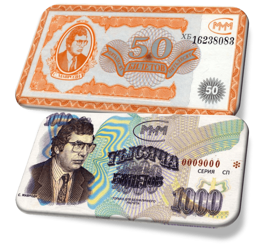 В 90-х российский рубль отличался крайней нестабильностью, что не позволяло обеспечить достойную жизнь гражданам страны. Финансовая пирамида МММ, не распознанная многими как мошеннический проект, воспринималась населением на ура, так как предлагала несложный выход из проблематичной ситуации. Однако, деятельность финансовой пирамиды длилась недолго: 4-го августа 1994-го С. Мавроди арестовали, а всю деятельность организации резко признали незаконной.