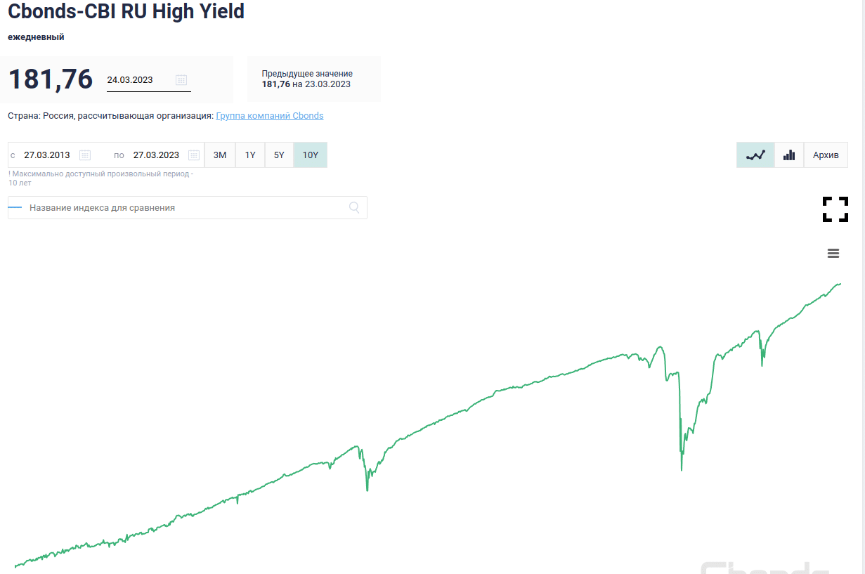Индекс Cbonds-CBI RU High Yield включает в себя бонды, которые соответствуют определенным параметрам, таким как объем эмиссии до 1 млрд рублей, оставшийся срок до погашения или оферты более 182 дней, ставка по купону выше ключевой ставки ЦБ РФ на 5 процентных пункта, ставка, которая не является плавающей и с валютной привязкой, а также объем торгов в день, который превышает 3 млн рублей.