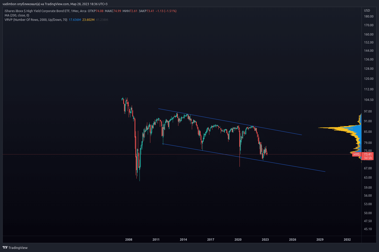 - iShares iBoxx $ High Yield Corporate Bond ETF (HYG) — Является одним из наиболее популярных ETF на мусорные облигации в США.