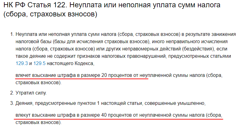 - уклонение от уплаты НДФЛ (при условии, что трейдер делает это умышленно) повышает размер штрафа до 40% от подоходного налога.