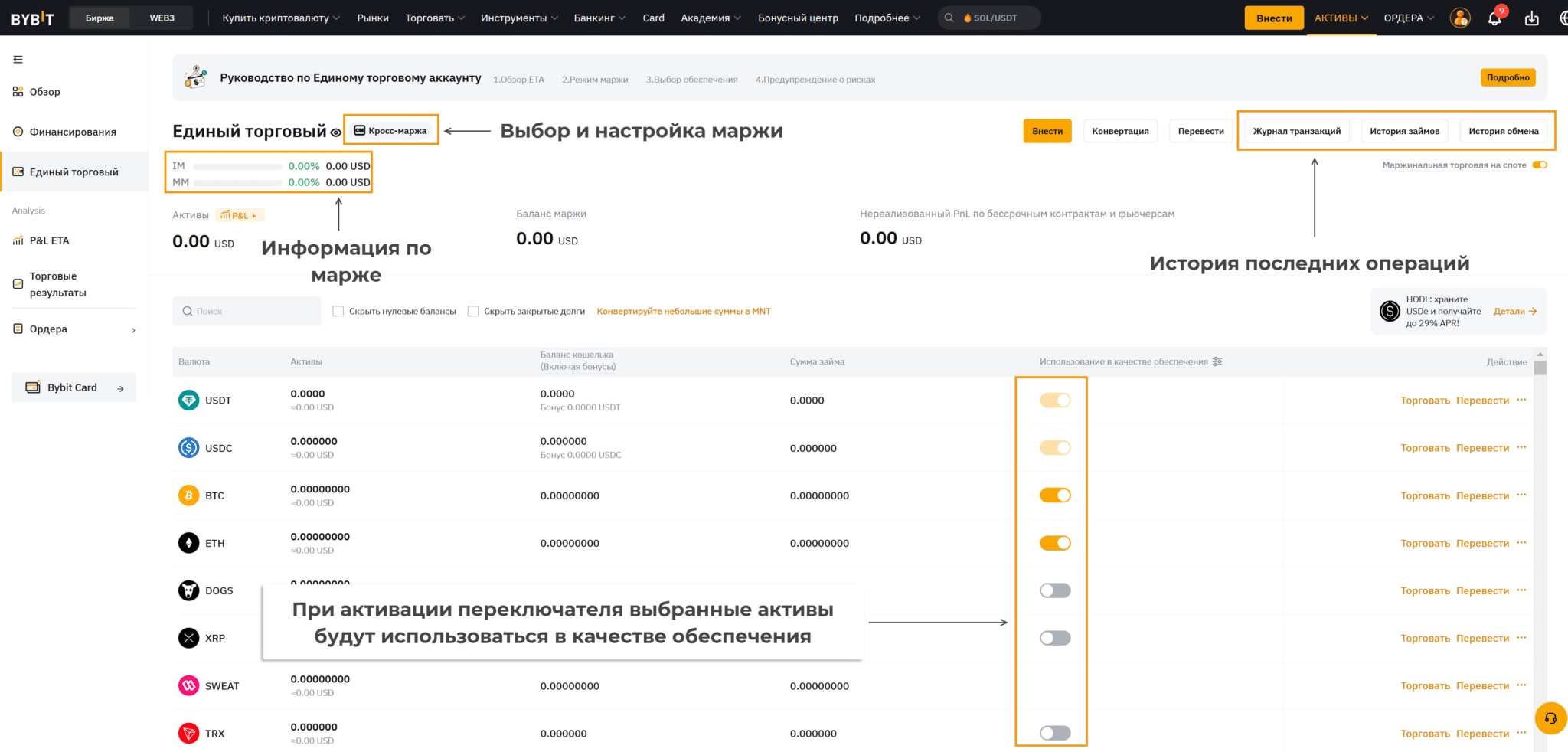 - Выбрать активы, которые будут использоваться в роли обеспечения. Напротив каждого актива есть соответствующий переключатель.