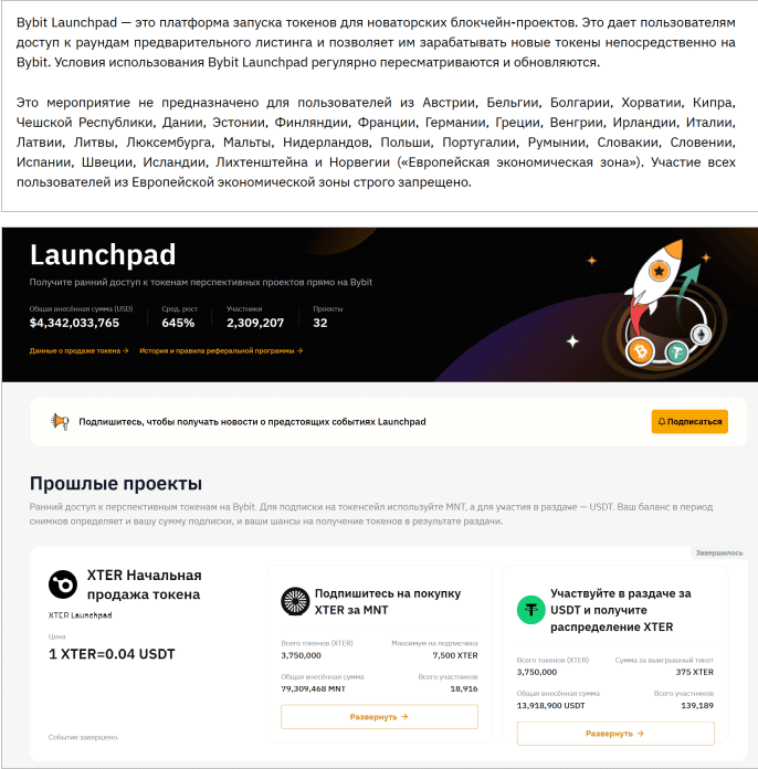 - Лаунчпад. Площадка, облегчающая запуск перспективных проектов, инвесторы могут вкладывать в них деньги. Есть существенные региональные ограничения, но они не касаются пользователей из России. С помощью токенов Mantle инвестор подписывается на распределение токенов, а после вноса USDT участвует в розыгрыше распределения токенов проекта.
