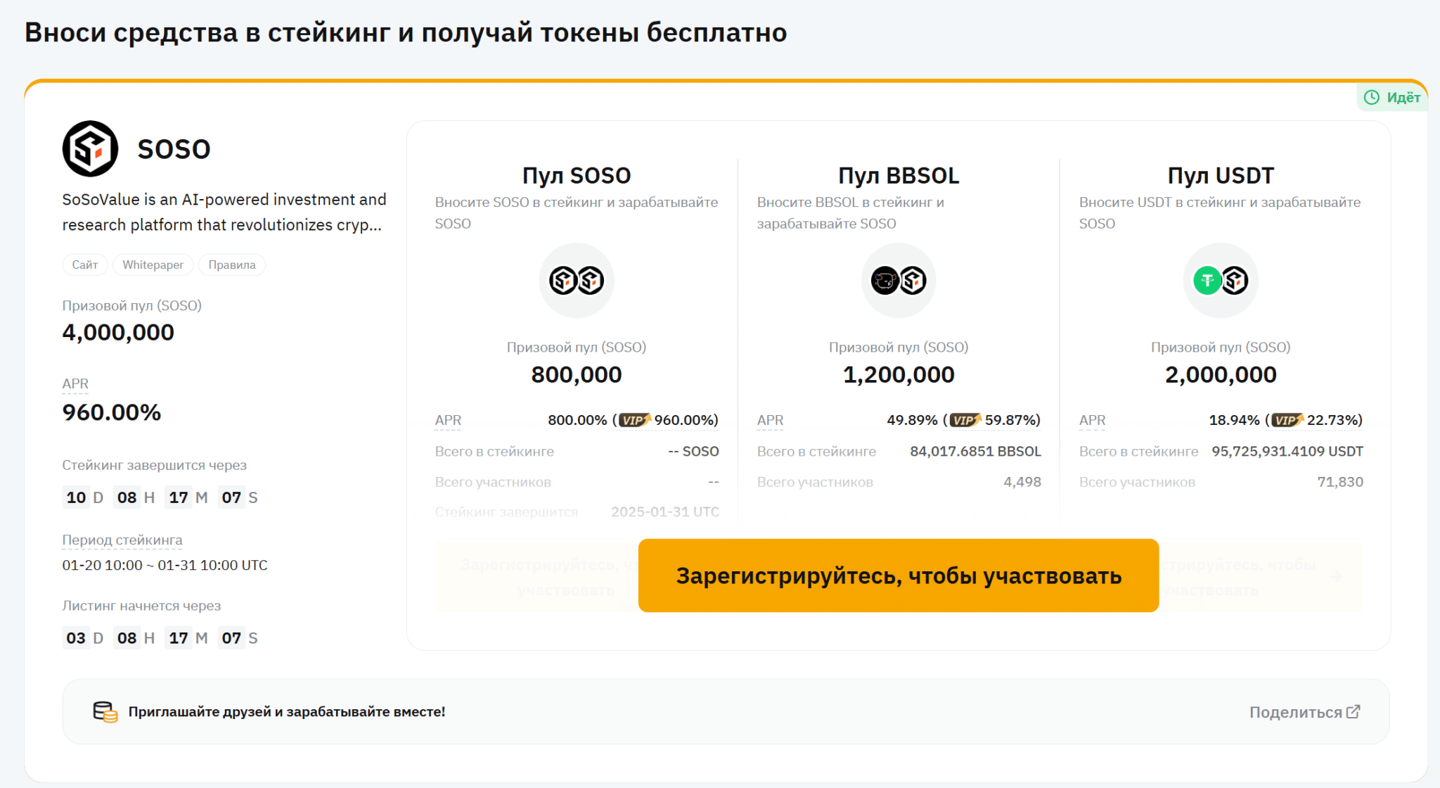 - Лаунчпул для участия в токенсейлах перспективных проектов.