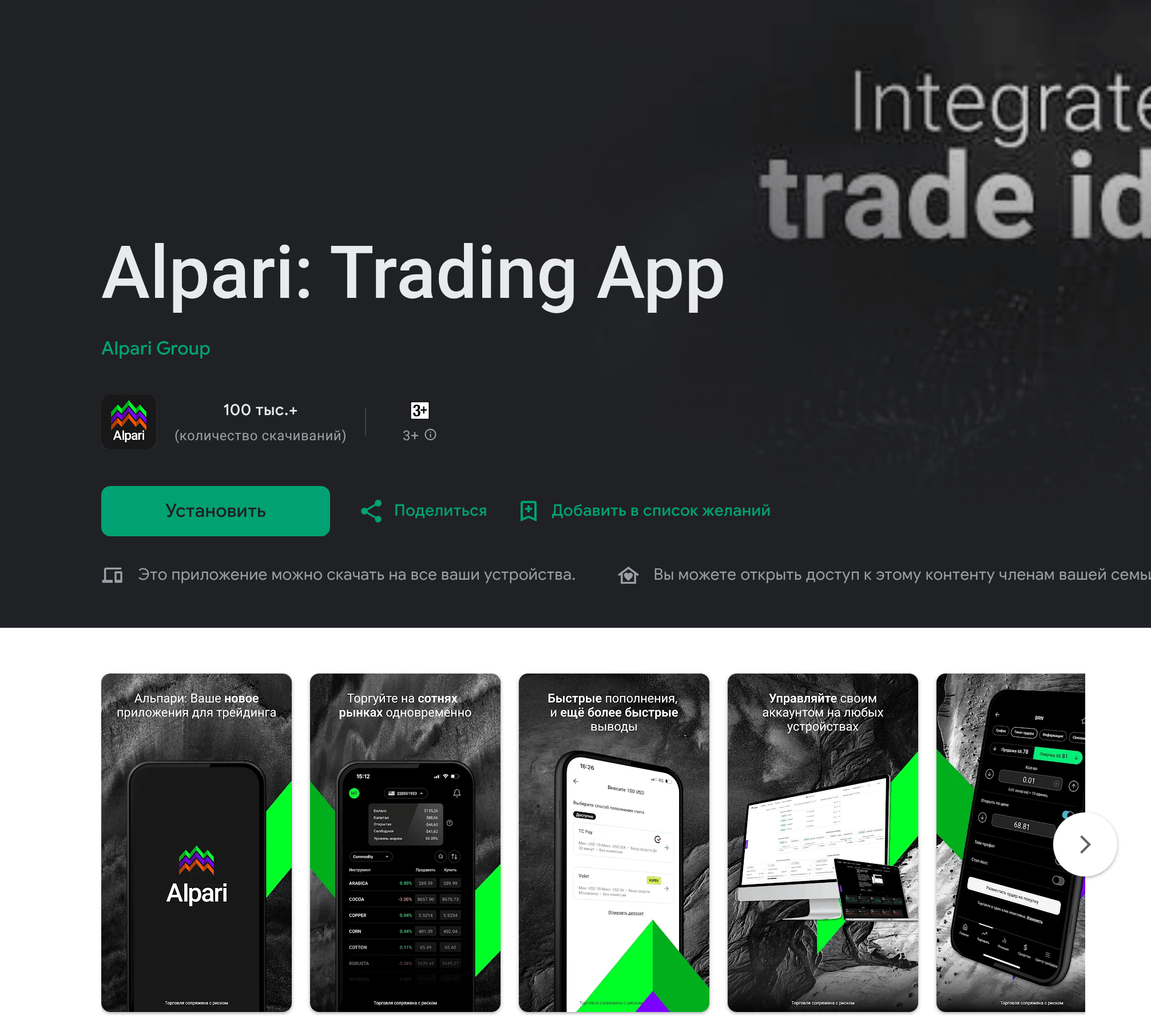 Мобильное приложение Alpari Trading App