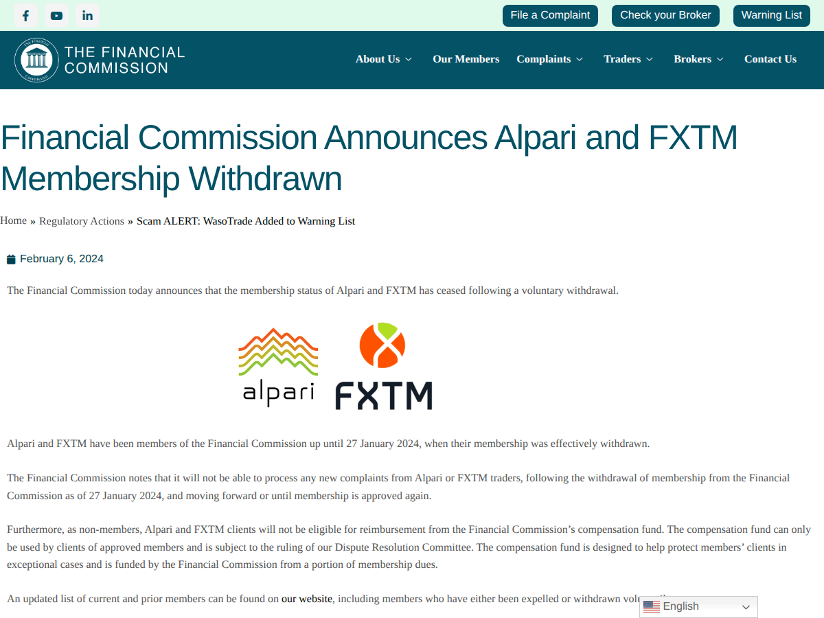 После этого международный Alpari продолжил работу через офшорные структуры. С 2020 года бренд входил в Exinity Group (вместе с FXTM). В январе 2024 года оба бренда добровольно вышли из Финансовой комиссии (FinaCom). А в июле 2025 года Finance Magnates сообщило об отделении Alpari от Exinity и передаче бренда новому юрлицу — Parlance Trading Ltd на Коморских островах. Итог: за 10 лет (2015–2025) Alpari прошла путь от брокера с лицензиями FCA, NFA и ЦБ РФ до офшорной компании без членства в каком-либо независимом арбитражном органе.