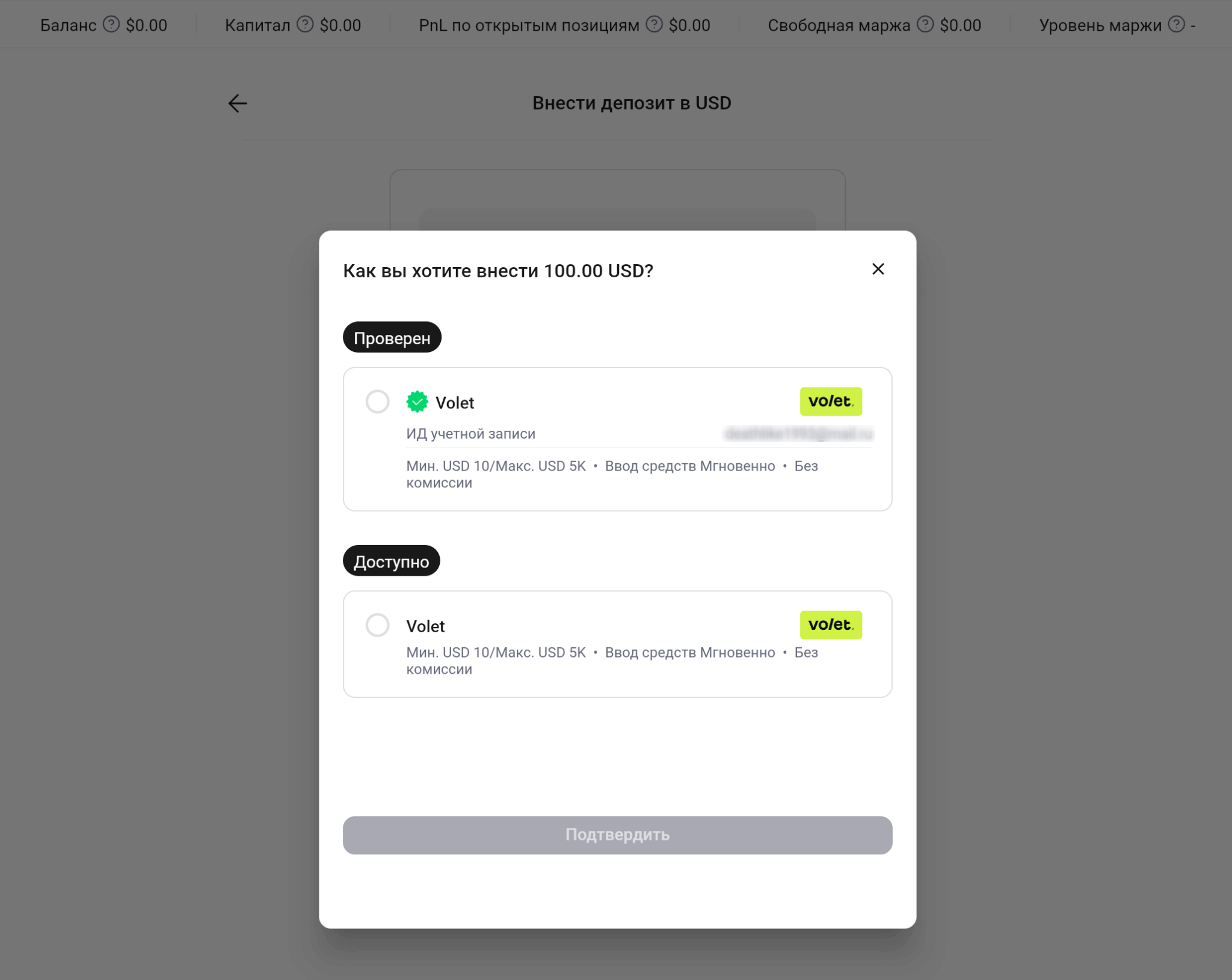 Вариант 1: Пополнение через Volet (с конвертацией из рублей).