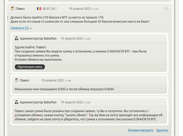 Выводы об обменнике Baksmany