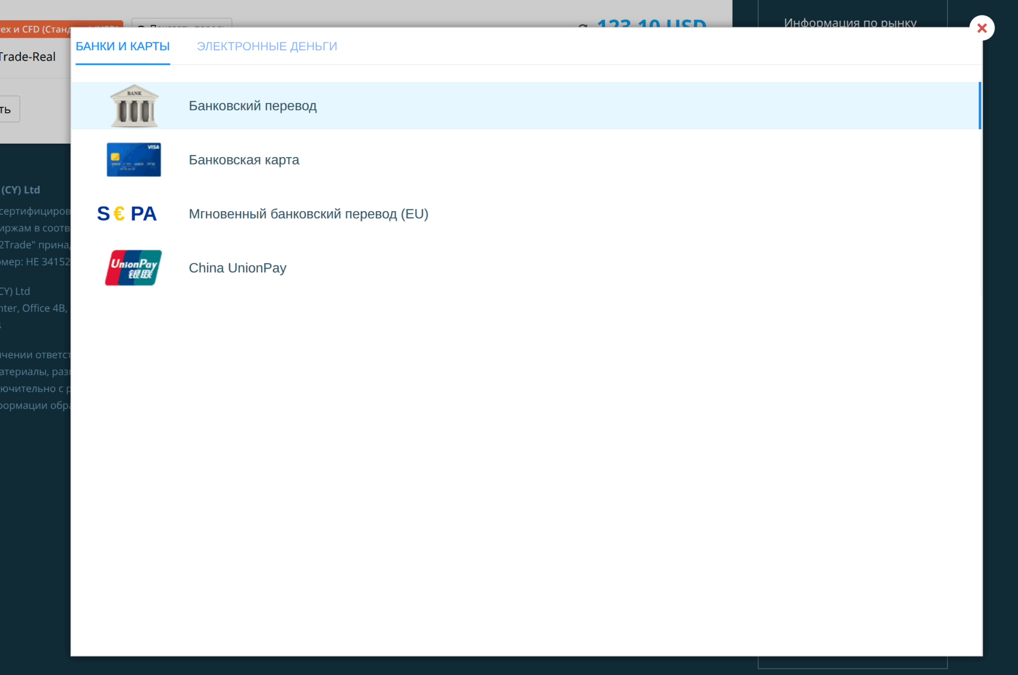 Банковская карта — один из самых удобных методов с комиссией 0% за пополнение и мгновенным зачислением. В личном кабинете Just2Trade пополнение картой доступно во вкладке «Банки и карты».