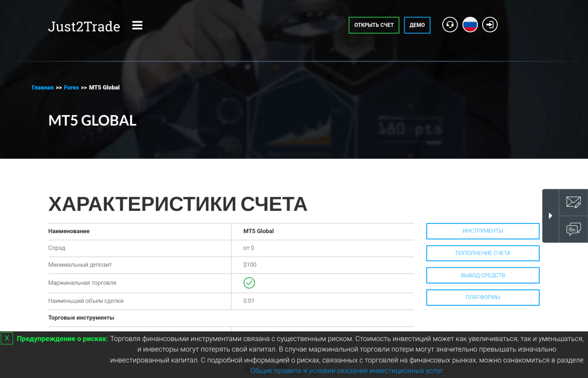 Для российского инвестора, который хочет не просто спекулировать на форексе, а строить диверсифицированный портфель из акций, облигаций и фьючерсов, MT5 Global — по сути единственный осмысленный выбор среди всех типов счетов Just2Trade. Все остальные счета — это вариации форекс-торговли с разной степенью комиссий и защиты.