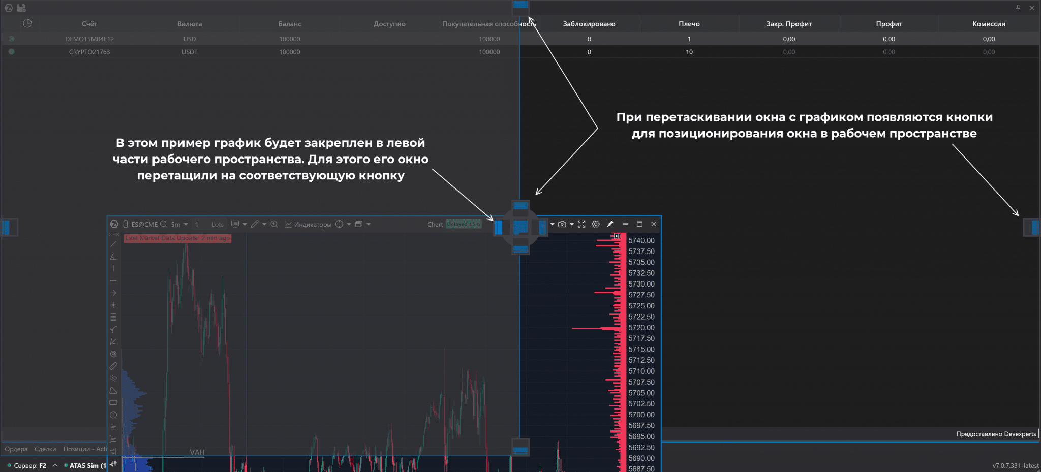 В случае с МетаТрейдером обычно трейдеру достаточно одного окна с графиком. На него добавляются индикаторы, выполняется разметка. Но в случае с платформой ATAS скорее всего понадобится дополнительное окно для анализа кластеров, стакан и прочие окна.