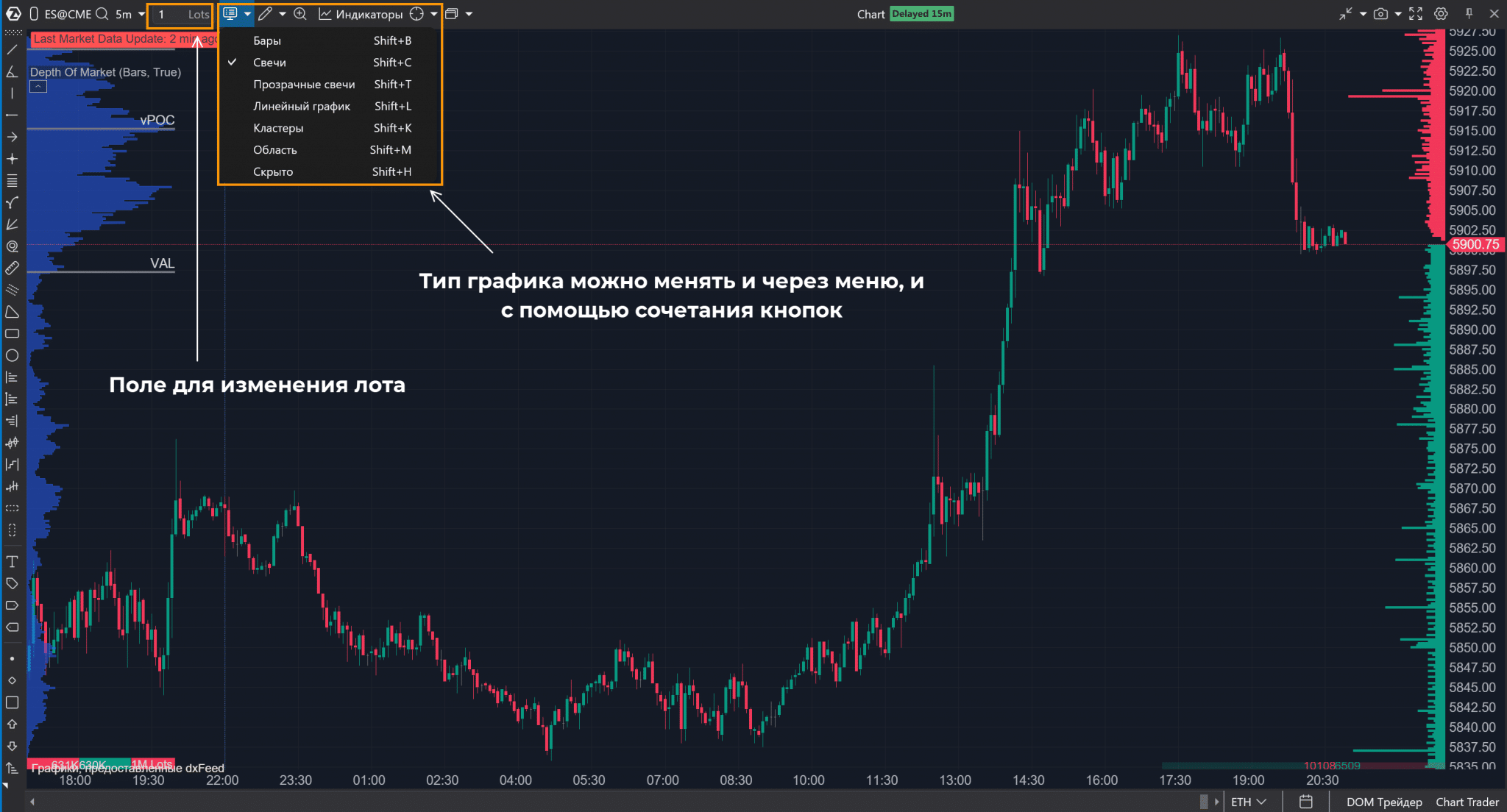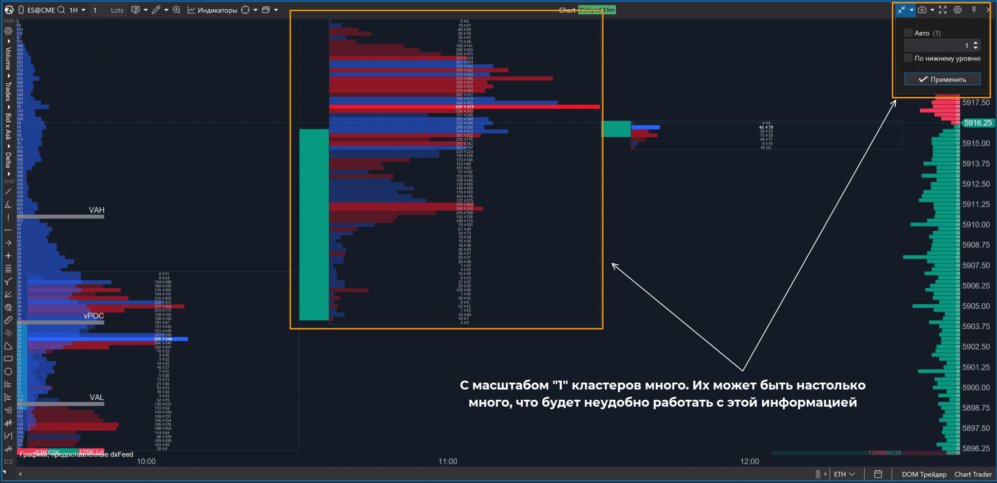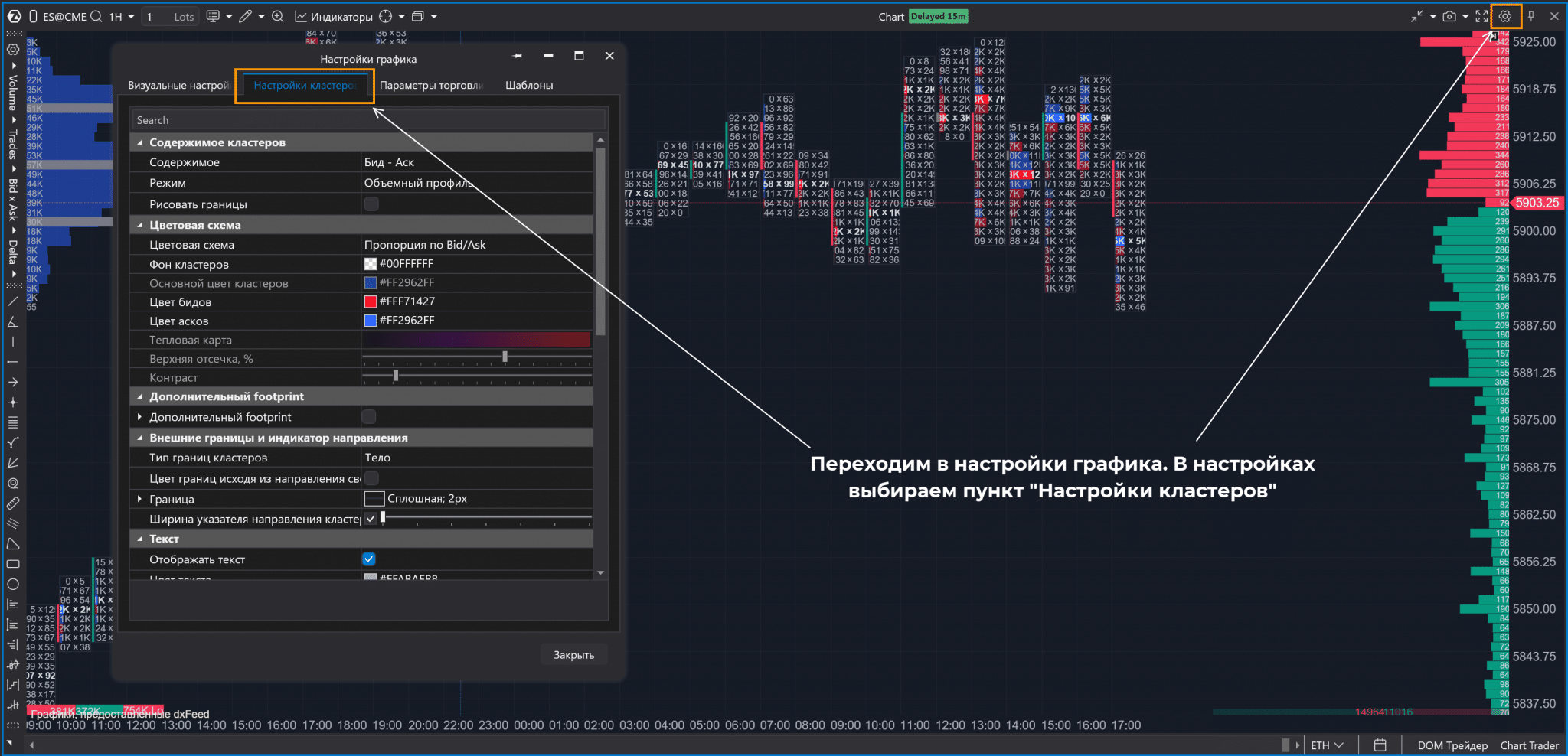 В этом разделе остановимся на том, с чем гарантированно столкнется каждый трейдер. Помимо работы с графиком, добавлением индикаторов разберем и настройку графика для кластерного анализа.