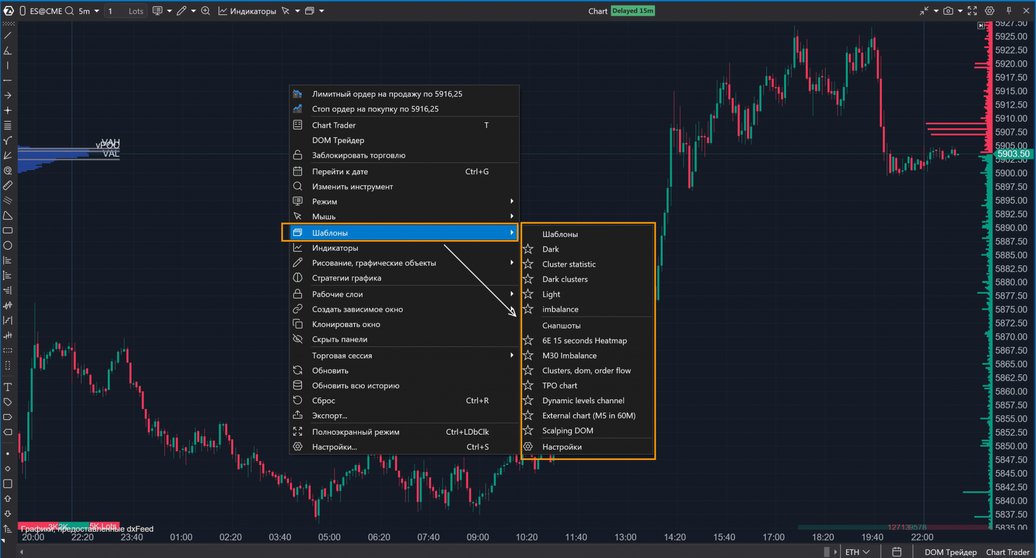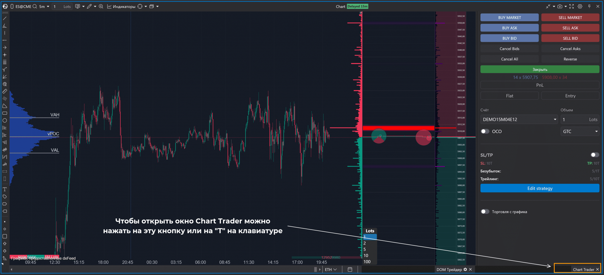 окно Chart Trader