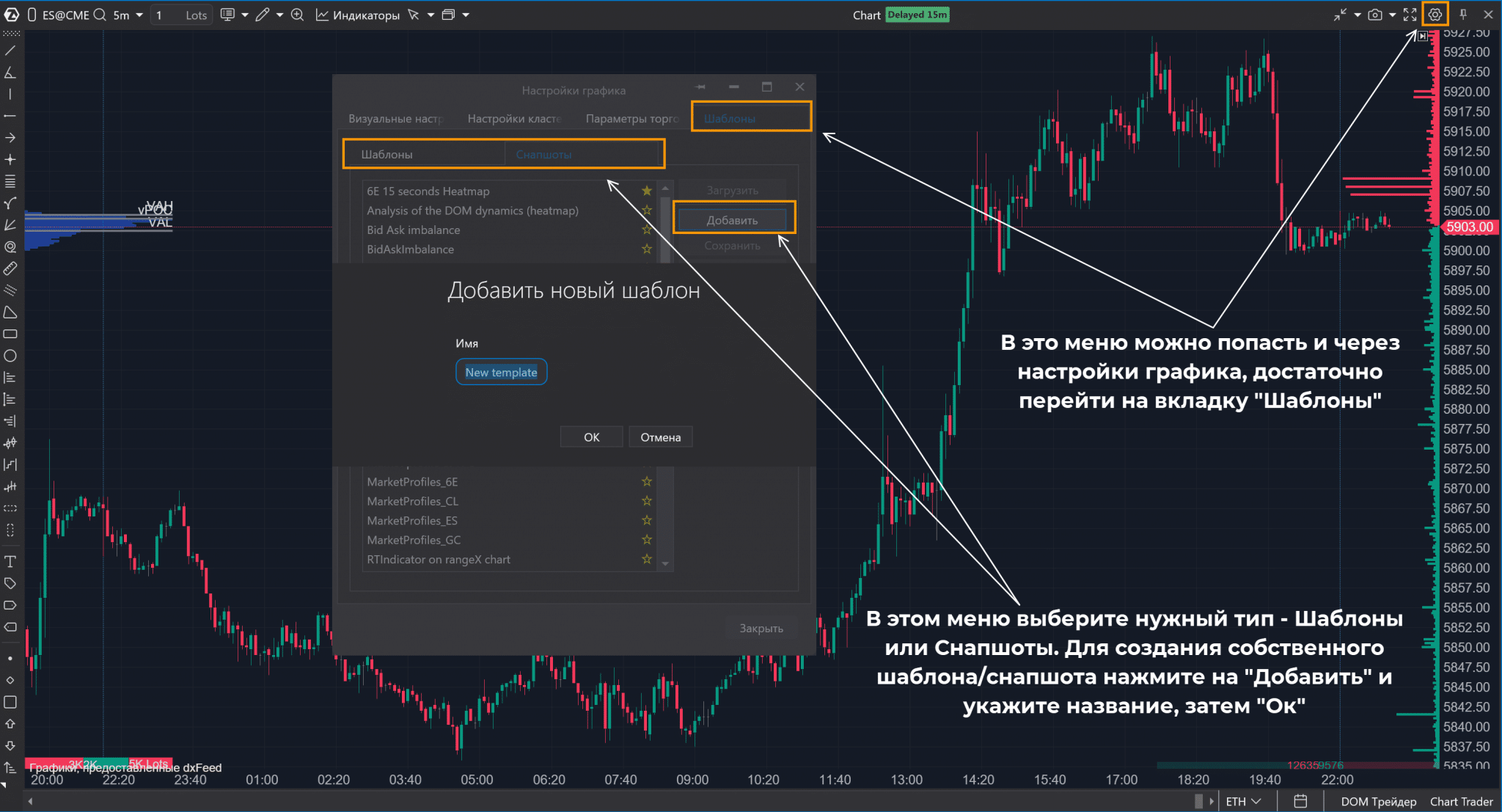 1. Шаблоны отвечают за сохранение настроек графика + добавленные индикаторы.