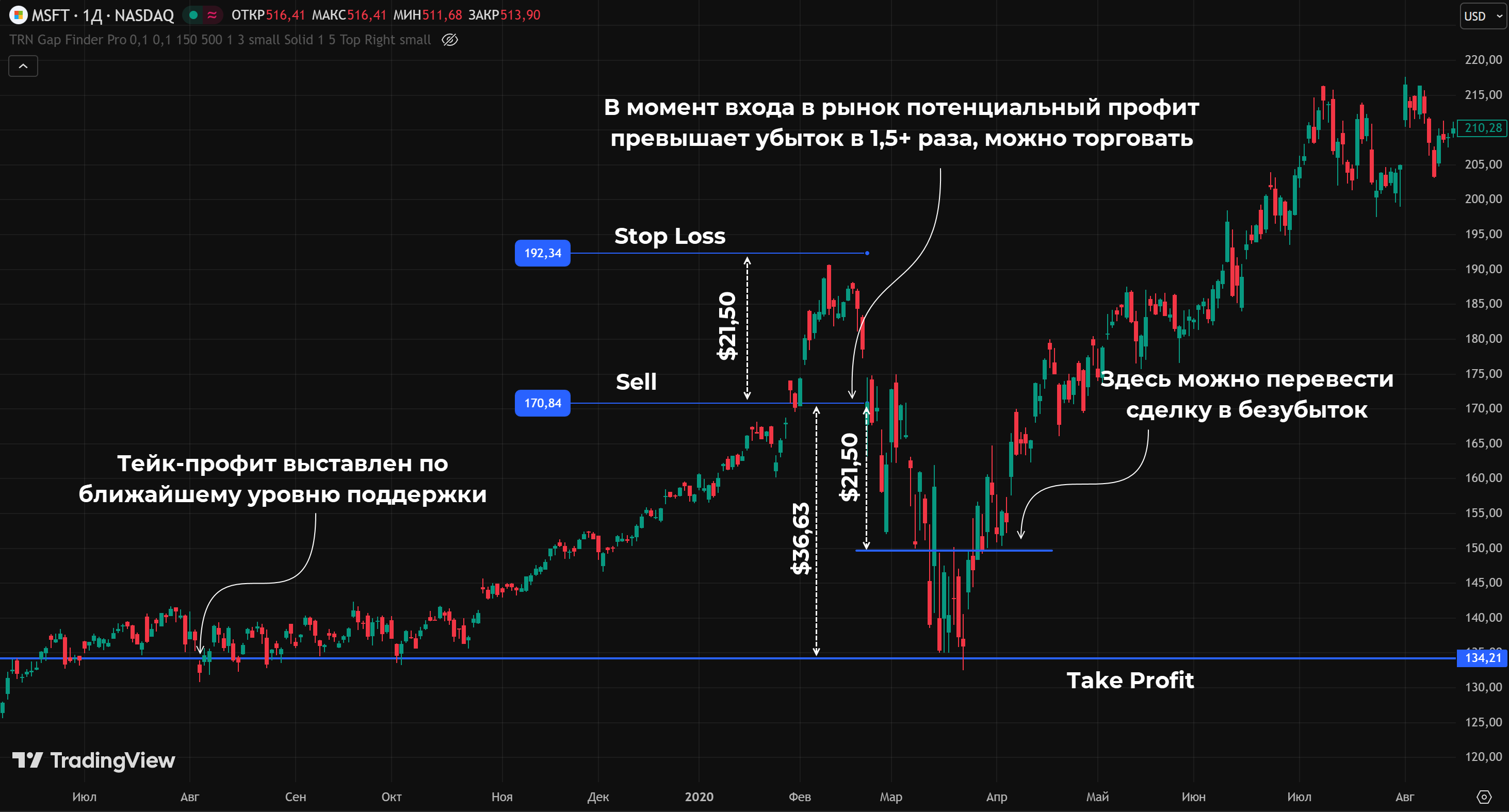 Если позволяет объем сделки, и вы уверены в потенциале движения, то на ближайшем уровне можно фиксировать половину объема. Часть позиции остается в рынке, для этого объема можно использовать трейлинг-стоп, чтобы выжать максимум из возможного роста/падения.