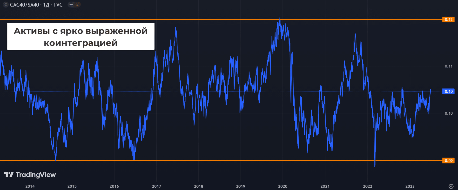 Этот пример доказывает, что корреляция не гарантирует коинтеграцию активов и наоборот. С точки зрения парного трейдинга на первое место по значимости выходит именно коинтеграция.