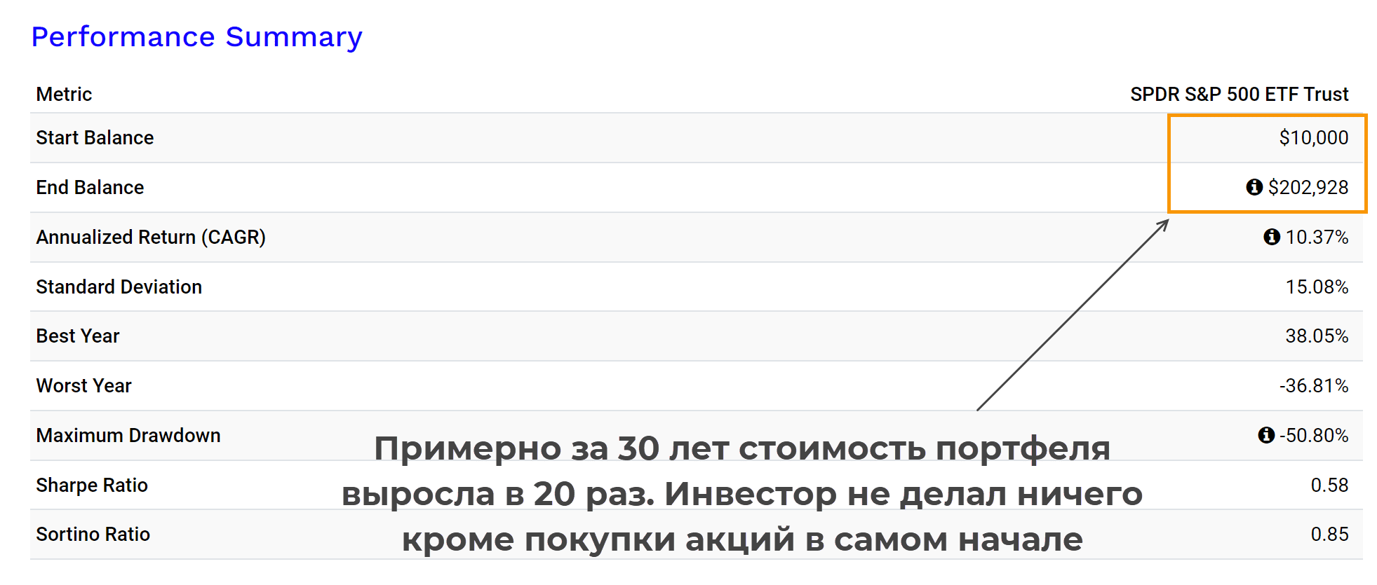 Этот пример показан лишь как иллюстрация потенциала «ленивого» инвестирования. Инвестор не собирал портфель самостоятельно, ограничившись покупкой акций биржевого фонда. В других направлениях (недвижимость, облигации и прочие варианты) доходность может быть ниже/выше, но и риск будет другим.