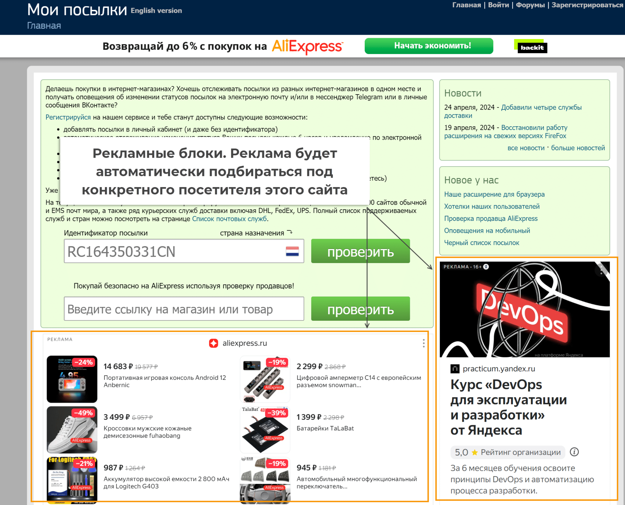 На многих сайтах часть пространства отведена под контекстную рекламу. Она подбирается в зависимости от конкретного человека, учитывается поведенческий аспект, история поиска и прочие нюансы. Владельцу сайта не нужно самостоятельно подбирать рекламные материалы, достаточно просто подключить рекламу.