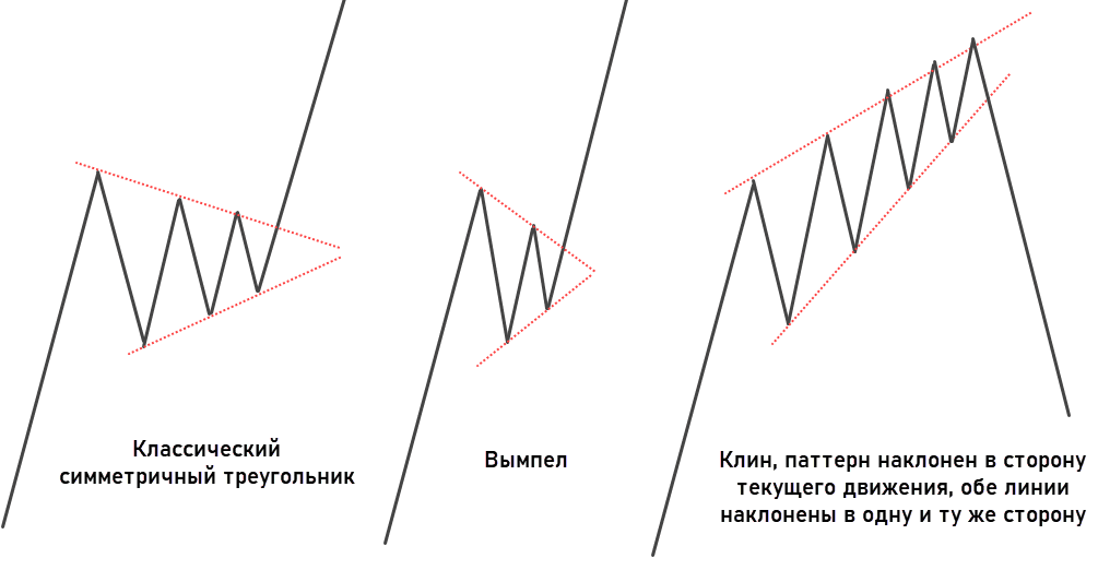 Паттерн клин — внешний вид, отличие от треугольника и вымпела