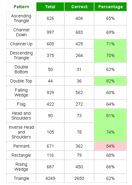 В пользу эффективности паттерна говорит и статистика Авточартист. Для клиньев доля отработавших фигур колеблется в диапазоне 60-70%.