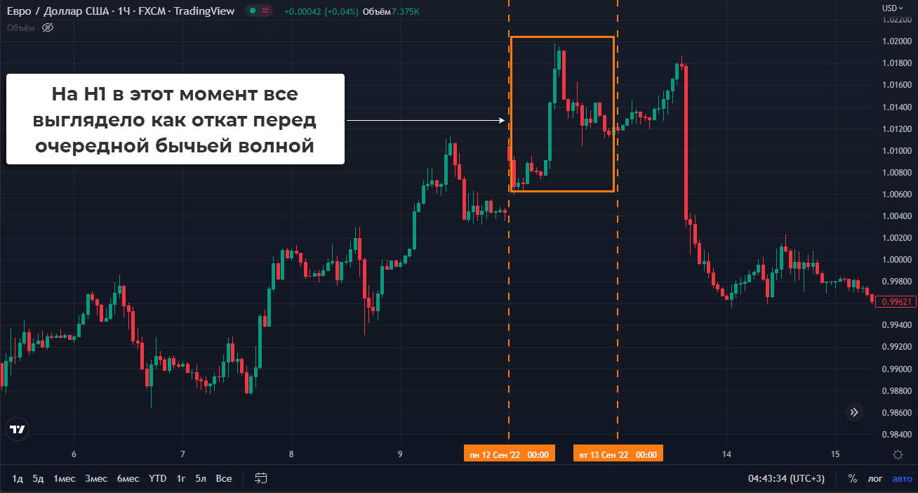 - Внутри дня серия волчков без опоры на уровни может указывать на готовящийся разворот или коррекцию. Если видите нечто подобное, то обезопасьте сделки.