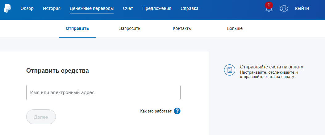 ШАГ №1. Для отправки денег нужно знать электронный адрес. Если пользователь PayPal создал PayPal.Me, можно обойтись и без email, достаточно иметь ссылку на его профиль.