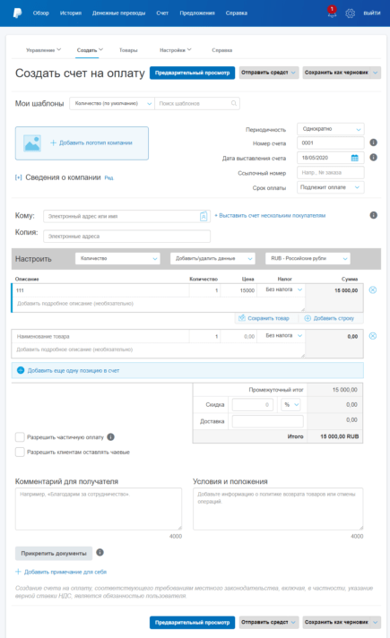 - выставить счет через личный кабинет, в заявке указываются условия платежа, затем плательщик оплачивает его и средства оказываются на вашем кошельке;