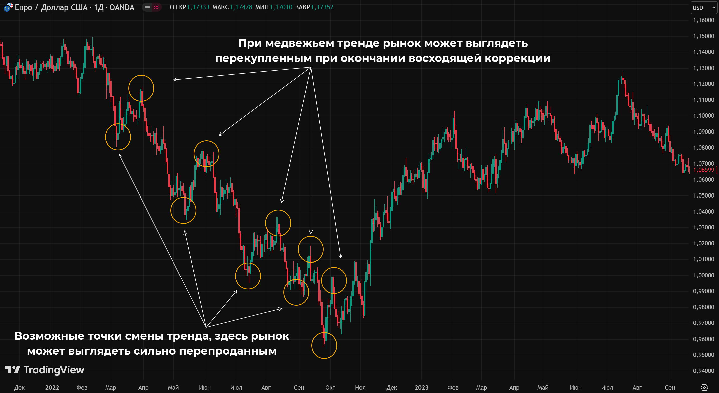 Перекупленность/перепроданность во флете и на трендовом рынке