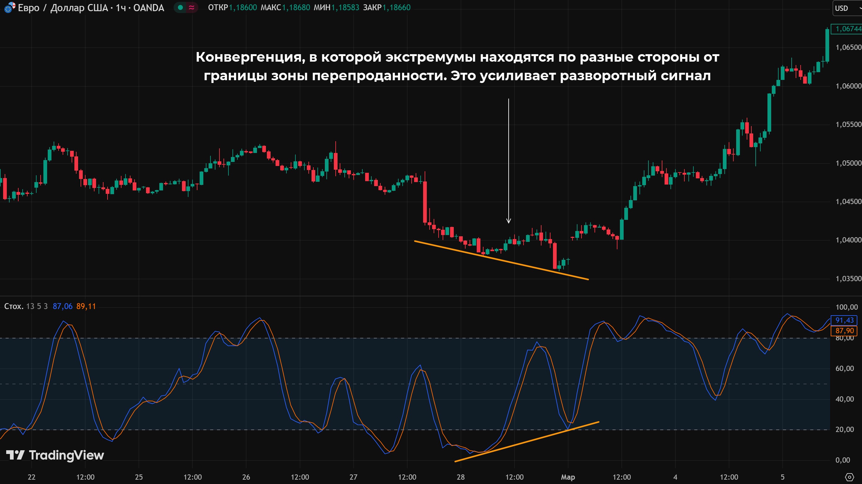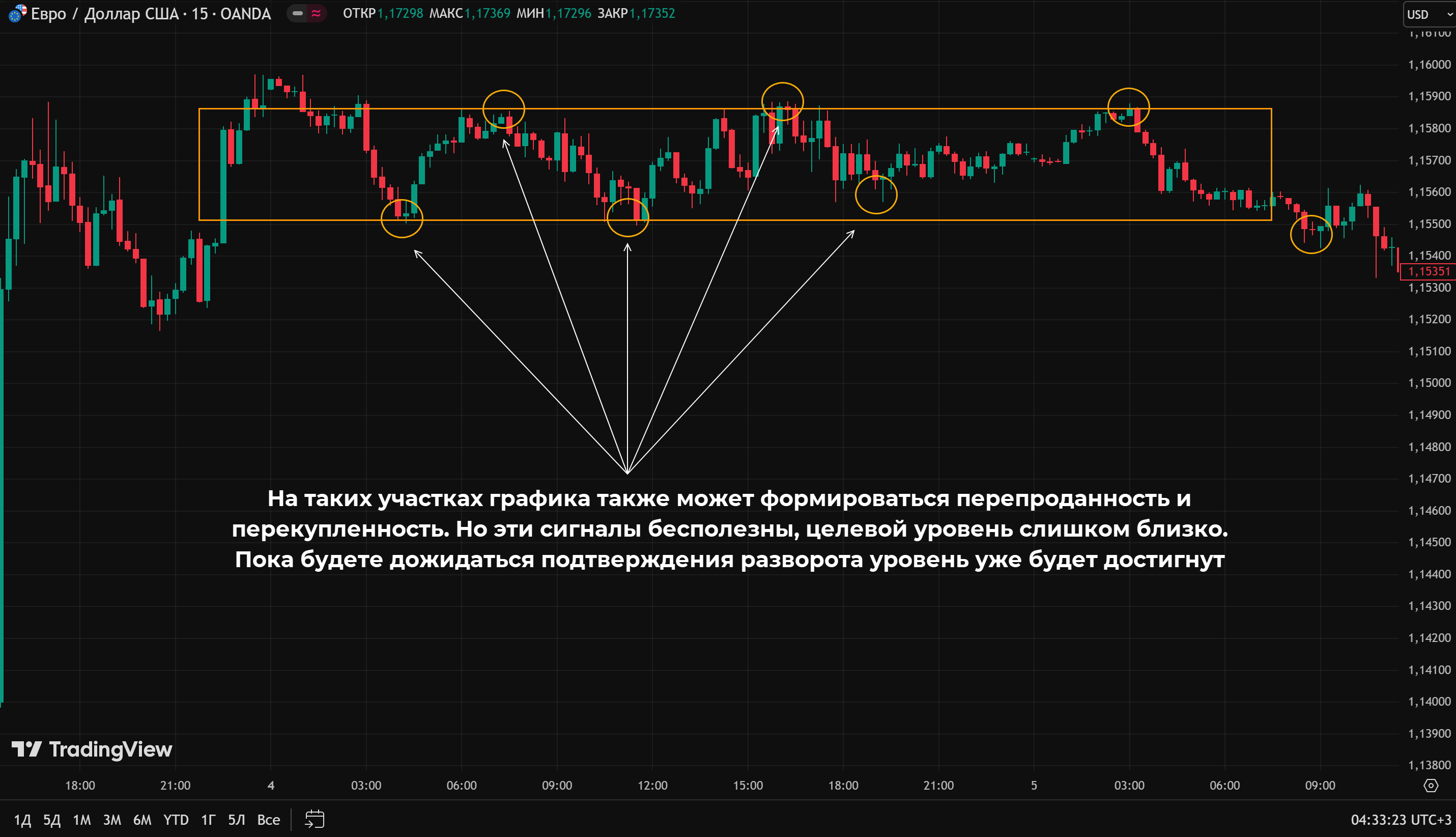 • Понимания принципа работы зон перепроданности/перекупленности. Это просто характеристика рынка, а не гарантия немедленного разворота.