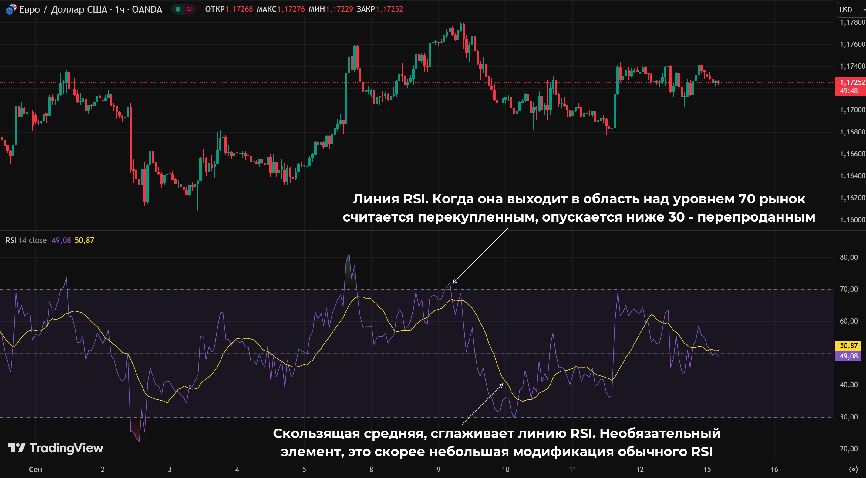Сравнение RSI с разными периодами на младшем таймфрейме