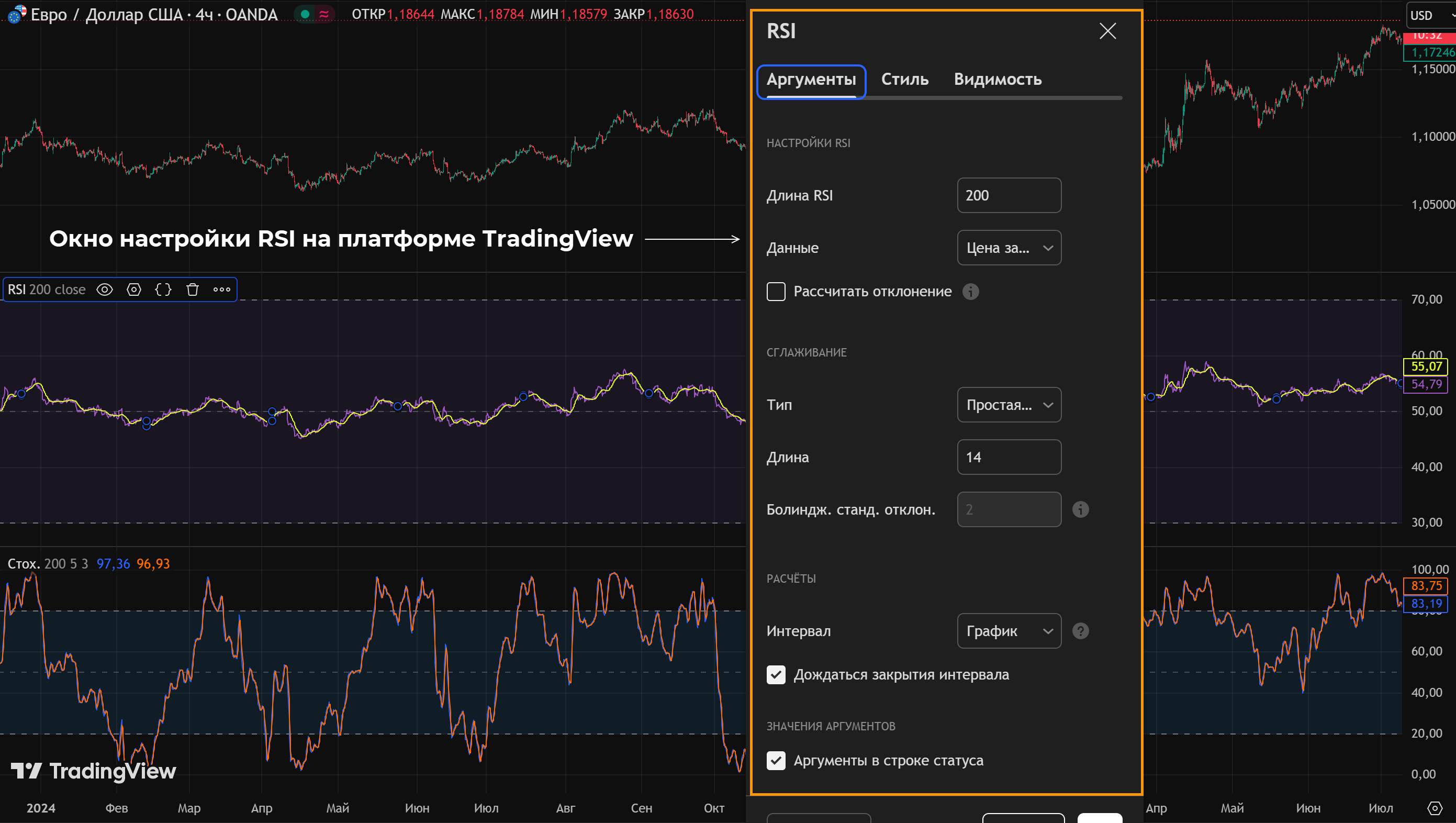 RSI и Стохастик с периодом 200 для подтверждения тренда