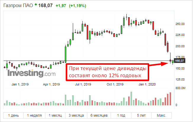 - Летом мы публиковали статью, в которой указывали перспективы вложений в акции Газпрома. Если инвестор принял решение купить ценные бумаги этой компании, то он мог хорошо заработать, но впоследствии цена снизилась и в данный момент из-за общей паники акции находятся на довольно низких отметках. То есть, можно сказать, что не вышедший из актива вовремя инвестор сейчас видит отрицательный результат. Это при раскладе, что всё было вложено именно в Газпром, другие бумаги игнорировались.
