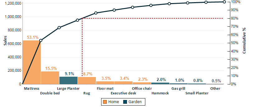 Представьте, что в магазине продаются матрасы, двойные кровати, сеялки (оборудование для фермеров), офисные стулья, коврики для пола, газовые грили, письменные столы и прочие категории товаров. Совокупный объем продаж – $1,2 млн в месяц.