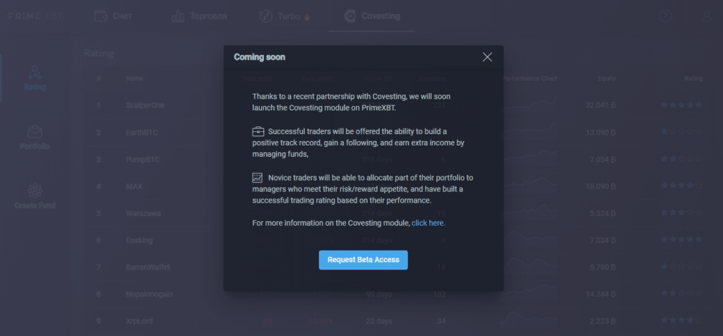 Модуль Covesting от PrimeXBT