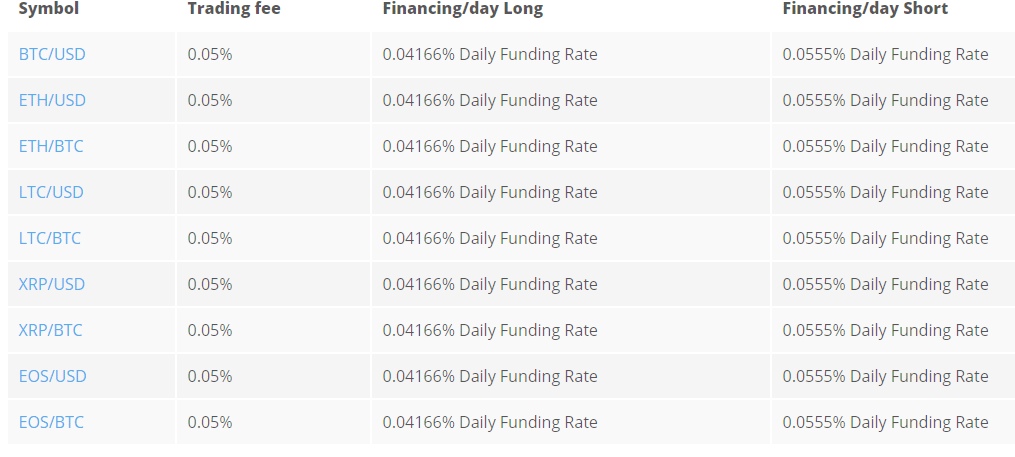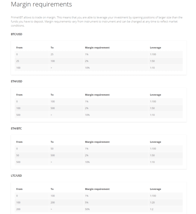 По валютным парам EOSBTC, EOSUSD, XRPBTC, XRPUSD, LTCBTC, LTCUSD ограничения выше. После определенного порога плечо понижается до 1 к 2.