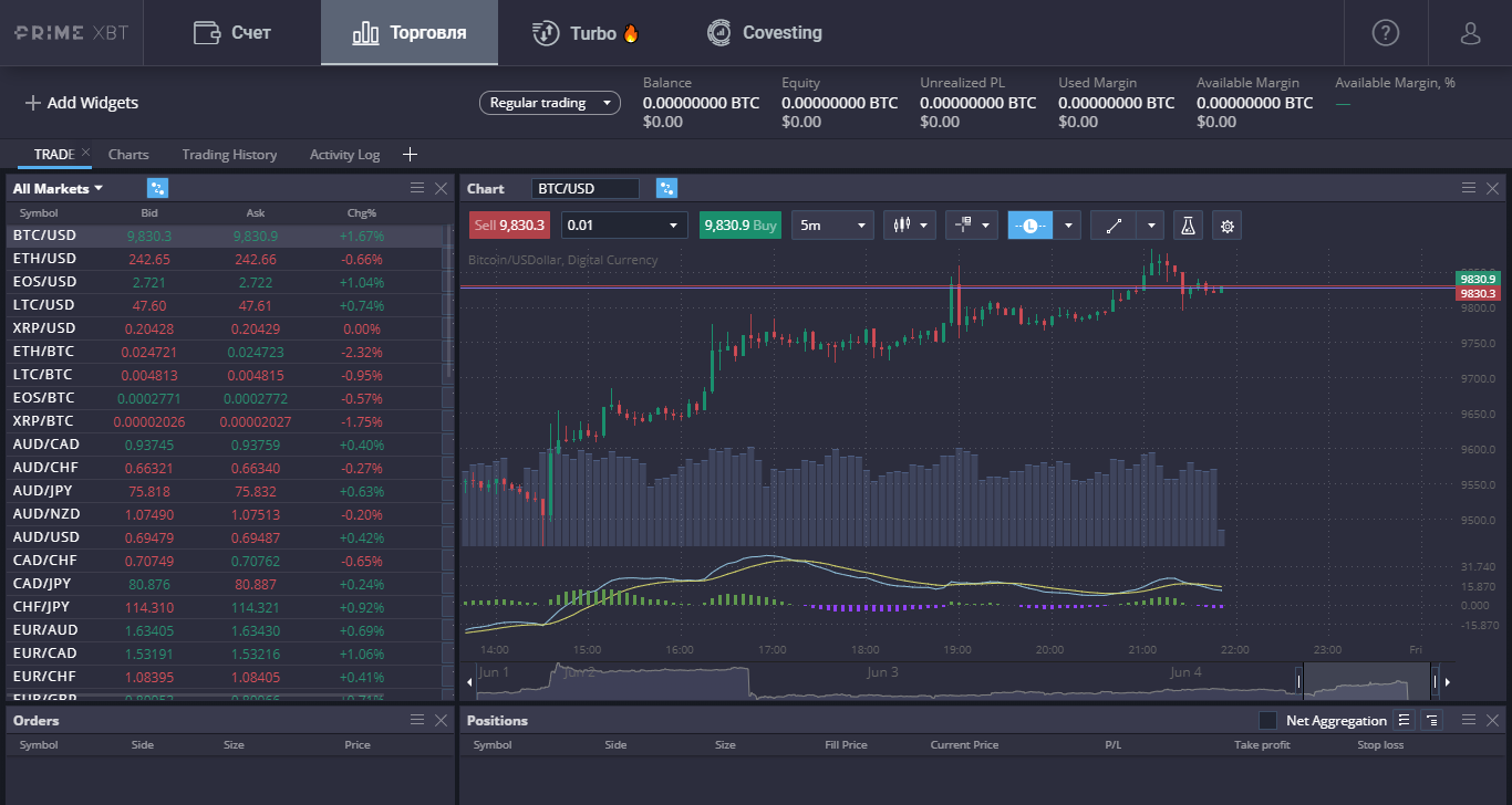 Торговля в PrimeXBT