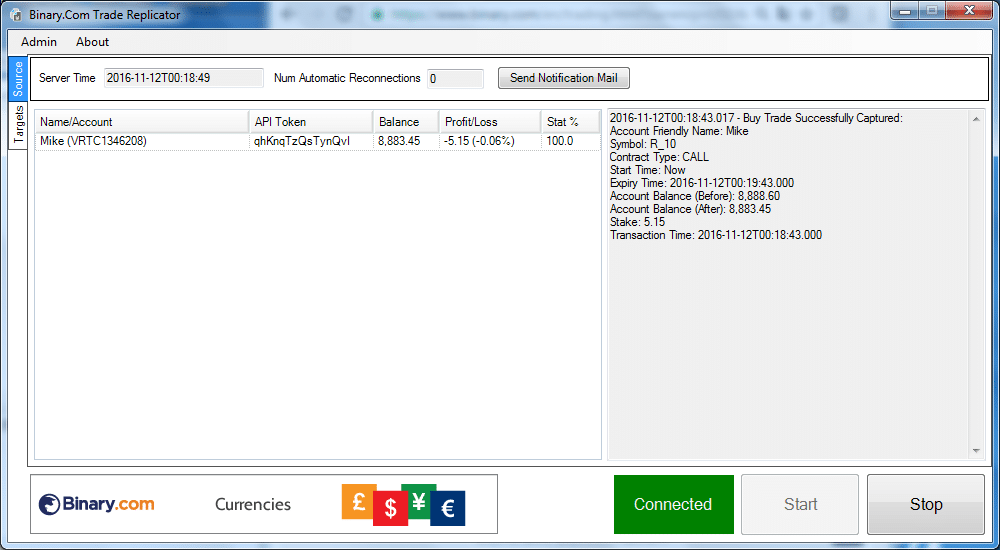 Приложение решает проблему автоматизации торговли бинарными опционами, правда, только в случае с брокером Binary.com. Это «мост», который способен перенаправлять заявки на заключение сделок в МетаТрейдере 4 или 5 в терминал брокера Binary.com.