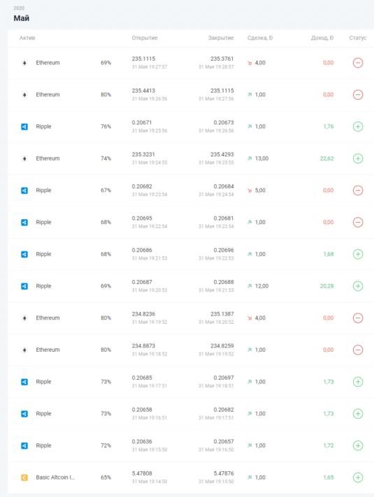 - робот сам выбирает актив с максимальной выплатой.