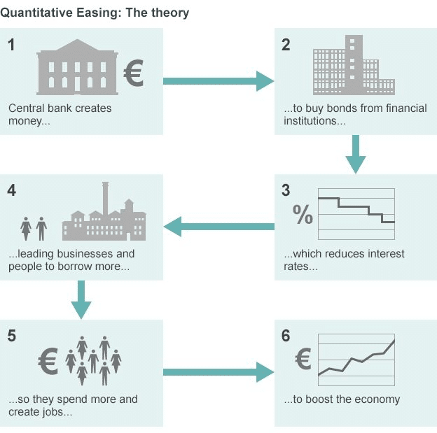 QE в экономике используется для того, чтобы буквально «накачать» финансовую систему деньгами. Если количественное смягчение реализовано правильно, то деньги перенаправляются в нужное русло, что благотворно сказывается на состоянии местной экономики. При этом Quantative Easing нельзя называть ультимативным решением любых проблем, это лишь инструмент, эффективность его использования зависит от конкретной страны и действий регулятора.