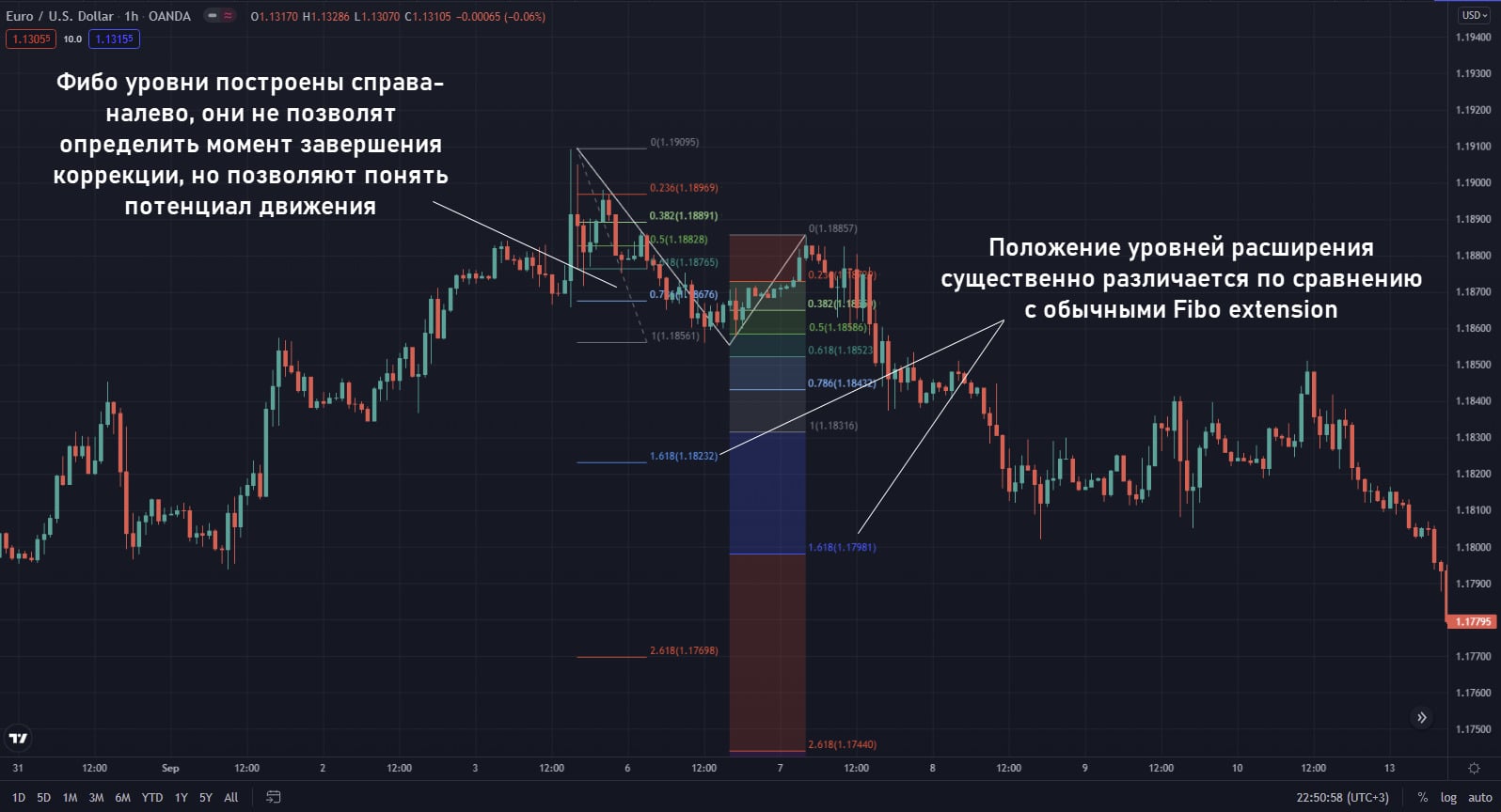 Fibo уровни и Fibo расширение – разные инструменты: