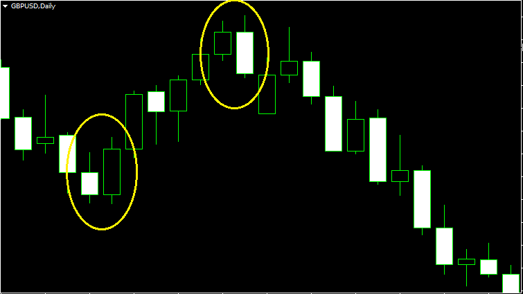 Ещё одни свечные разворотные модели, но состоящие из трёх японских свечей.
