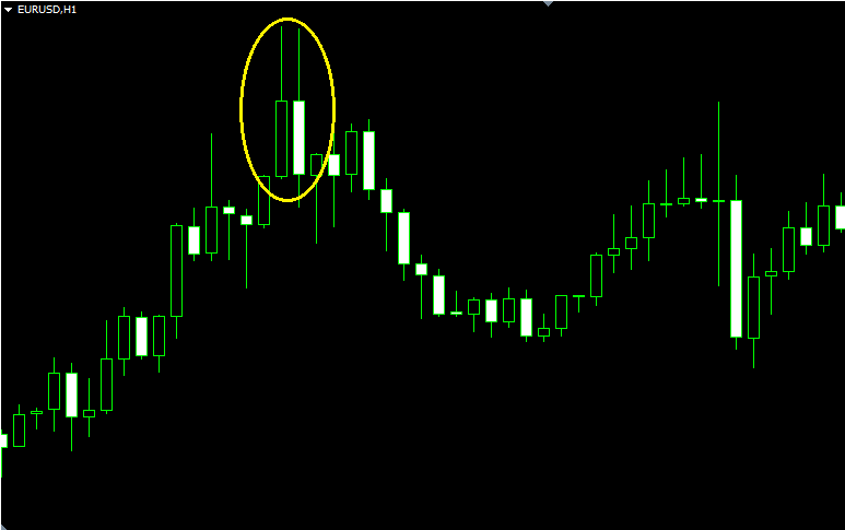 Рассмотрим на примере вечерней звезды. Первая свеча должна показывать уверенный рост, закрытие происходит неподалёку от максимума, тень не очень длинная. Вторая, центральная свеча, имеет маленькое тело, направленное вниз. Диапазон сильно выделяет её по сравнению с соседними. После этого следует формирование третьей свечи, которая во многом похожа на первую и хорошо, если имеет схожий диапазон. Обычно такие комбинации встречаются на дневном графике, когда свеча посередине является точкой колебания и нерешительности рынка, именно в этот момент и определяется, что будет дальше, поэтому вся комбинация и состоит из трёх элементов.