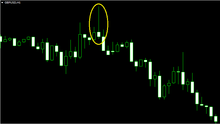 Крайне эффективная разворотная модель в трейдинге, которая отличается от остальных тем, что актуальна даже на пятиминутном (М5) графике. Представляет собой свечу, у которой уровень открытия примерно совпадает с уровнем закрытия, то есть тело обычно очень маленькое. Вместе с этим, у такой свечи должна быть очень длинная тень, которая сильно выделяется на графике по сравнению с остальными свечами. Так происходит обычно в том случае, когда цена делает резкое движение, после которого происходит столь же резкий откат. Такие колебания провоцируют либо экономические публикации, либо сильные сопротивления или поддержки, которые отталкивают цену ещё быстрее, чем в случае с рассмотренной ранее V-образной моделью, которая, кстати, нередко содержит в разворотной точке пин бар меньшего масштаба.
