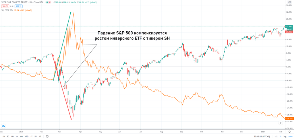 Инверсные ETF создаются именно для хеджирования рисков. Это идеальный инструмент для того, чтобы свести к нулю влияние рецессии в экономике на ваш инвестиционный портфель.