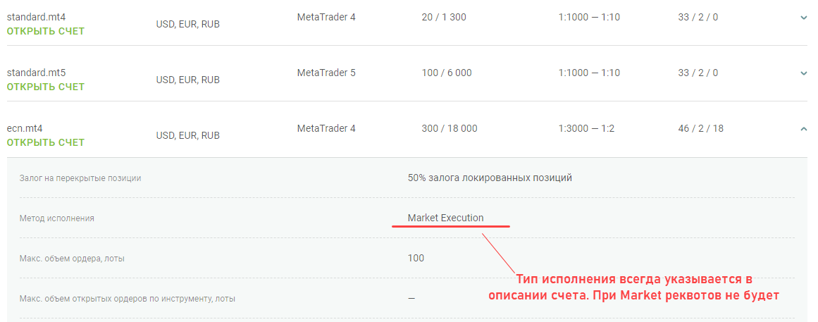 Для разных типов счетов брокеры предлагают разные типы исполнения приказов: