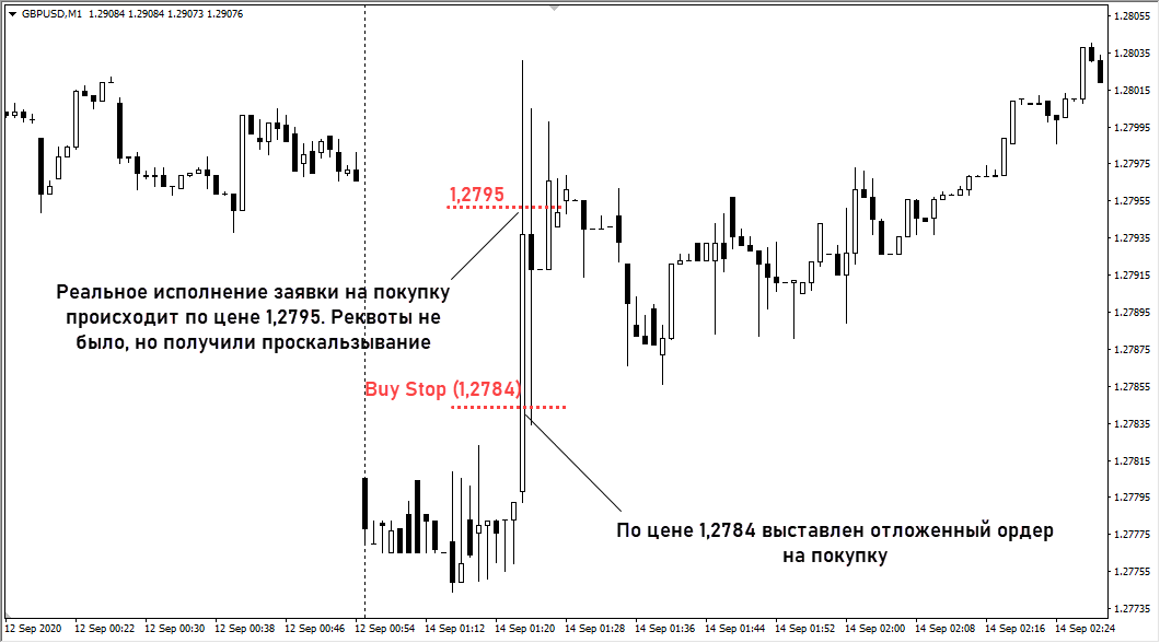 Чаще всего подобное происходит при выходе резких новостей. В обычном режиме за миллисекунды, потраченные на обработку заявки трейдера, цена если и изменится, то на доли пункта.