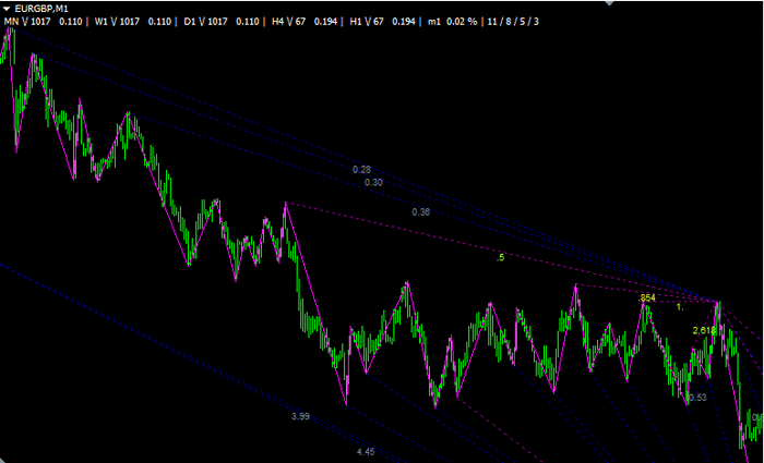 Индикатор ZUP постоянно просчитывает соотношения между волнами на предмет паттернов