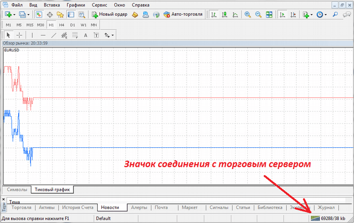 Соединение с торговым сервером - Недостаточная мощность компьютера. Системные требования для терминалов очень низкие, но эти параметры требуются только для того, чтобы он вообще функционировал. Если открыть множество вкладок с графиками, то есть вероятность подтормаживаний, не совсем адекватного отображения, разрывов. Всё это в совокупности может привести к неправильной интерпретации происходящего, ведь рывки цены с разрывами происходят только на сильных новостях. График затем будет подгружен, но это не отменит неудачный вход. Также наличие большой истории в графиках сильно нагружает компьютер, если загрузить исторические данные, то терминал может начать потреблять очень много памяти, что негативно сказывается на производительности.