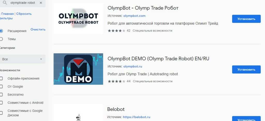 - в магазине расширений интернет браузера Chrome есть несколько алгоритмов для торговли с БО. Причем у некоторых есть пробные версии, можно проверить, как они работают на демо счете;
