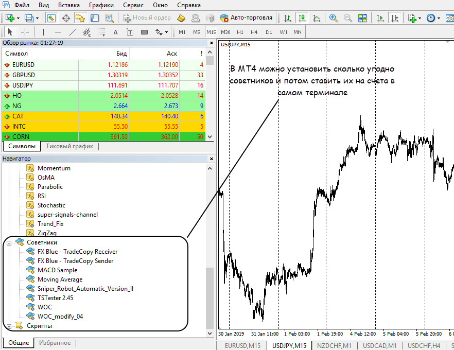Проблема в том, что большинство брокеров бинарных опционов использует не МТ4 или МТ5, а веб терминалы. В МетаТрейдере разработчики предусмотрели возможность создания советников, и их установку самим трейдером. Файл копируется в соответствующую папку, и после перезапуска список советников отображается в навигаторе.